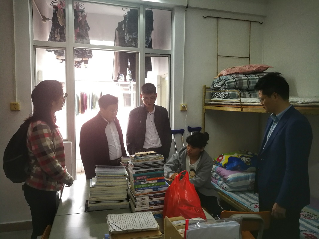 1月5日中午,学院领导房亚兵、梁海华、赵珲、游志福,以及辅导员陈远明老师,前往看望军训受伤的2017级数学与应用数学(师范)2班王俊慧同学,带去师生的问候,并送上慰问品。(太阳成集团tyc122cc入口)