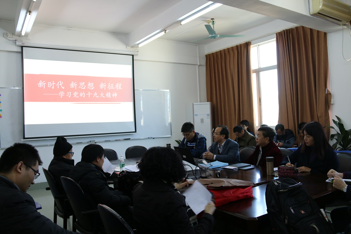 2018年1月11日,我院邀请马克思主义学院副院长余翔博士为全体教职工宣讲党的十九大精神。余翔博士从十九大概况、十九大背景、十九大主题解析、习近平新时代中国特色社会主义思想、党建工作等方面,对党的十九大精神进行了深入解读,并结合学校改革与发展的实际,就如何对标落实党的十九大精神,做了精彩的报告。(太阳成集团tyc122cc入口党总支)