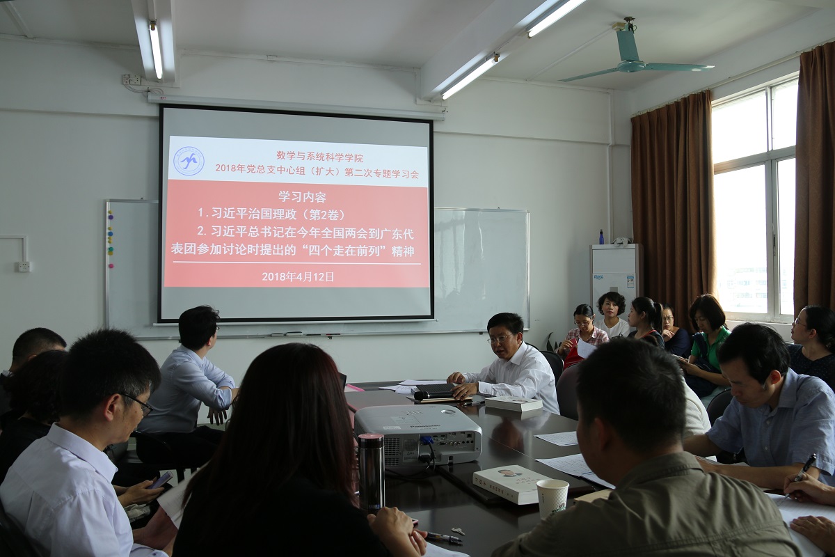 2018年4月12日下午,在校本部一教1211室,太阳成集团tyc122cc入口党总支中心组举行2018年第2次专题学习会,中心组成员出席了学习会。主要学习内容:一是学习《习近平谈治国理政》第二卷;二是传达学习习近平总书记今年全国两会到广东代表团参加讨论时提出的“四个走在前列”精神,并进行研讨座谈。