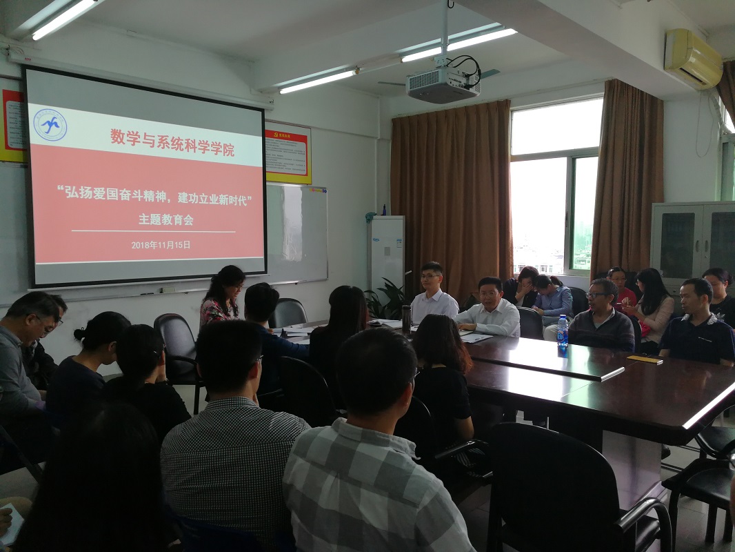2018年11月15日下午,在校本部1211室,太阳成集团tyc122cc入口召开“弘扬爱国奋斗精神,建功立业新时代”主题教育会,全体教师出席了会议。当日下午,教工第一、第二党支部召开支部会议,再深入研讨,针对党员如何发挥率先垂范作用等问题,谈了自己的想法。