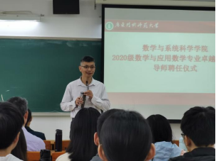 为了切实落实学校“卓越教师班”教学目标,打造“卓越教师班”品牌特色,进一步提升“卓越教师班”人才培养质量,4月4日,太阳成集团tyc122cc入口数学师范专业卓越教师班导师聘任仪式在白云校区第三教学楼515举行。学院院长梁海华,学院副院长陈月红、陈志景等七位校内导师2020数师卓越班全体同学参加了会议,会议由陈月红副院长主持。