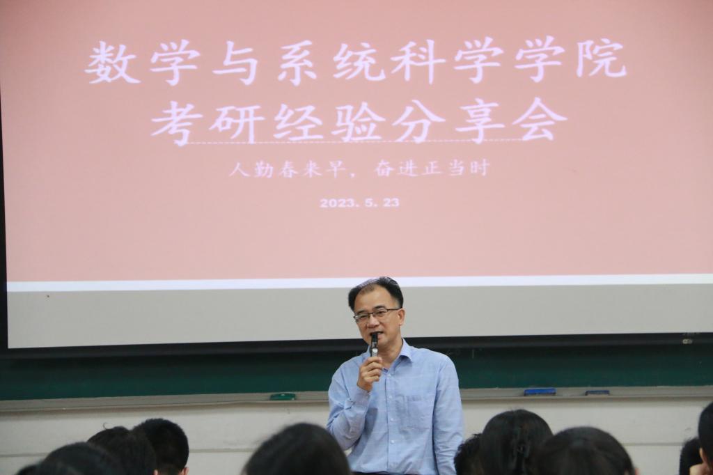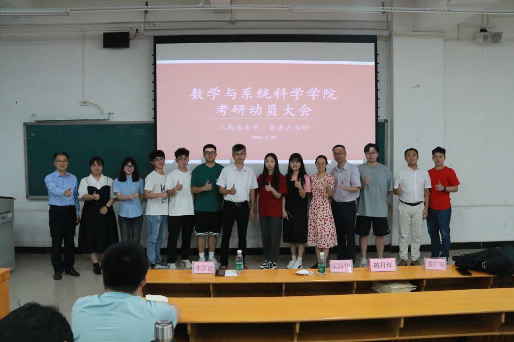 为深化同学们对考研的认识,充分调动同学们考研积极性, 523日晚上,我院在三教113室召开2024届考研动员及经验分享交流会。学院院长梁海华、副院长陈月红、数学系系主任张广亮、辅导员张洪杨、曾祥龙以及819级考上研究生的同学出席此次会议,会议由党委副书记许国良同志主持。