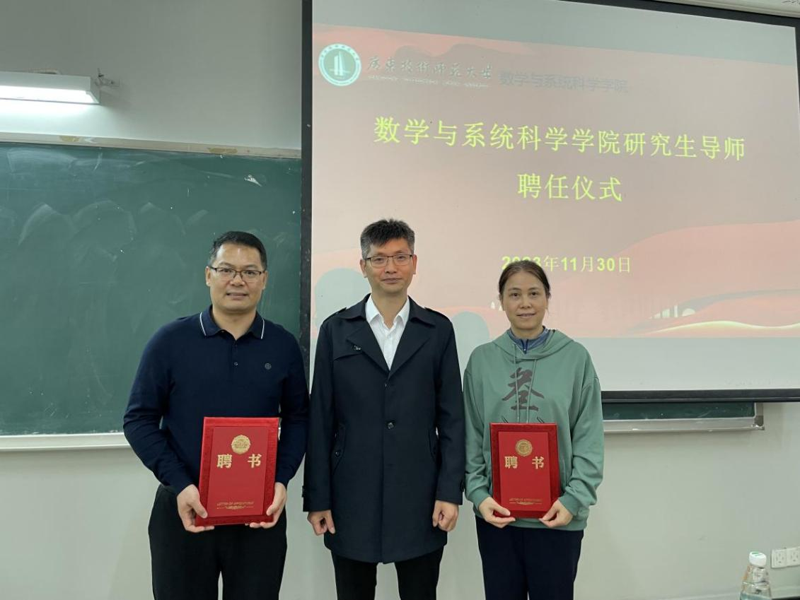 为落实学科教学(数学)研究生双导师制人才培养模式,提高数学专业研究生的教学技能和综合能力,1130日,太阳成集团tyc122cc入口举行学科教学数学硕士研究生校外导师聘任仪式暨校外专家报告交流会。本次聘任的校外导师为东莞中学初中部古梅第一中学的副校长邓文勇和华南师范大学附属中学数学高级教师叶巧卡,学院院长梁海副院长陈月红、党委副书记许国良、22级和23级学科教学(数学)研究生参加会议会议由许国良副书记主持。
