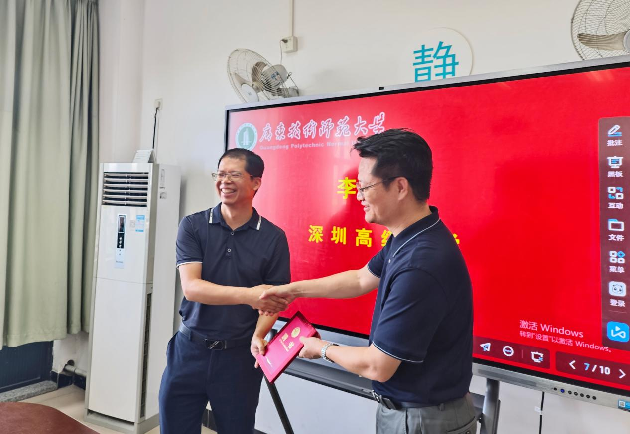 2024年10月10日下午,我院在白云校区第一教学楼602会议室举行2024年学科教学(数学)研究生校外硕导聘任仪式暨师生交流会。我院党委书记白雪飞、院长梁海华、副书记许国良、深圳高级中学李浩宾老师、深圳市翠园中学金宁老师、东莞中学初中部麻涌古梅一中常务副校长李静、副校长邓文勇、教导处余琼芳老师、以及我院硕士生导师、2024级学科教学(数学)全体研究生参加了会议,会议由许国良副书记主持。