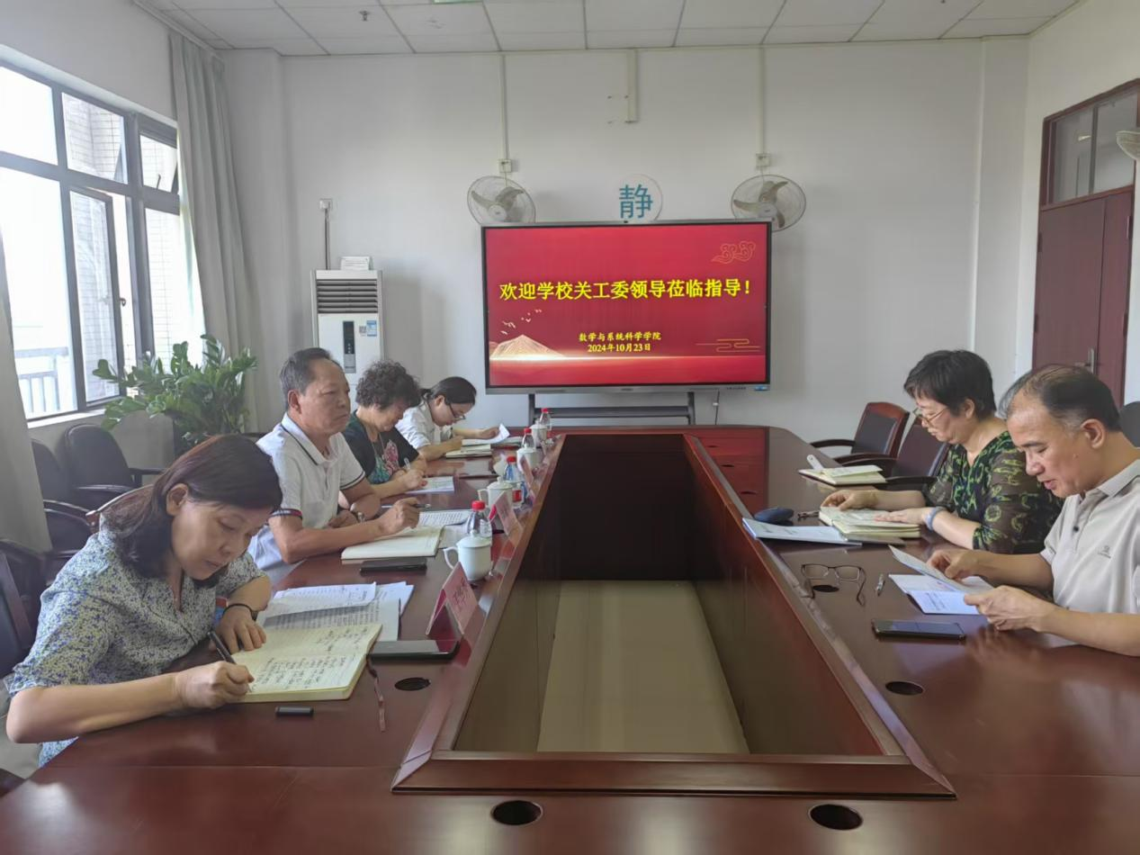 2024年10月23日上午,学校关工委主任黄秋文、秘书长王华秀、胡晨波和秘书梁婷一行到数学与系统科学学院调研指导关工委工作。管理学院党委书记白雪飞、党委副书记许国良、团委书记刘敏等参与本次调研交流活动。