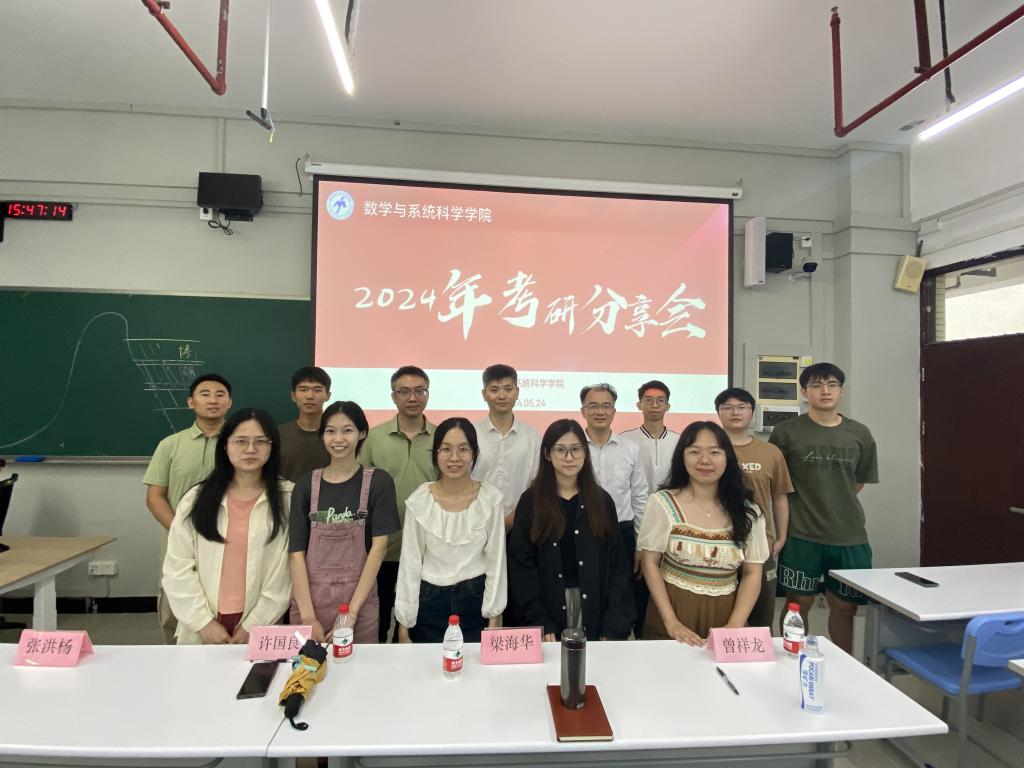 为更好地帮助同学们解答考研过程中的疑惑,增强考研自信心,提高同学们的考研热情。我院于5月24日在白云校区第二教学楼202教室召开考研经验分享会。会议由辅导员张洪杨老师主持,学院院长梁海华、党委副书记许国良、数学系系主任张广亮以及9名20级考上研究生的同学出席此次会议。