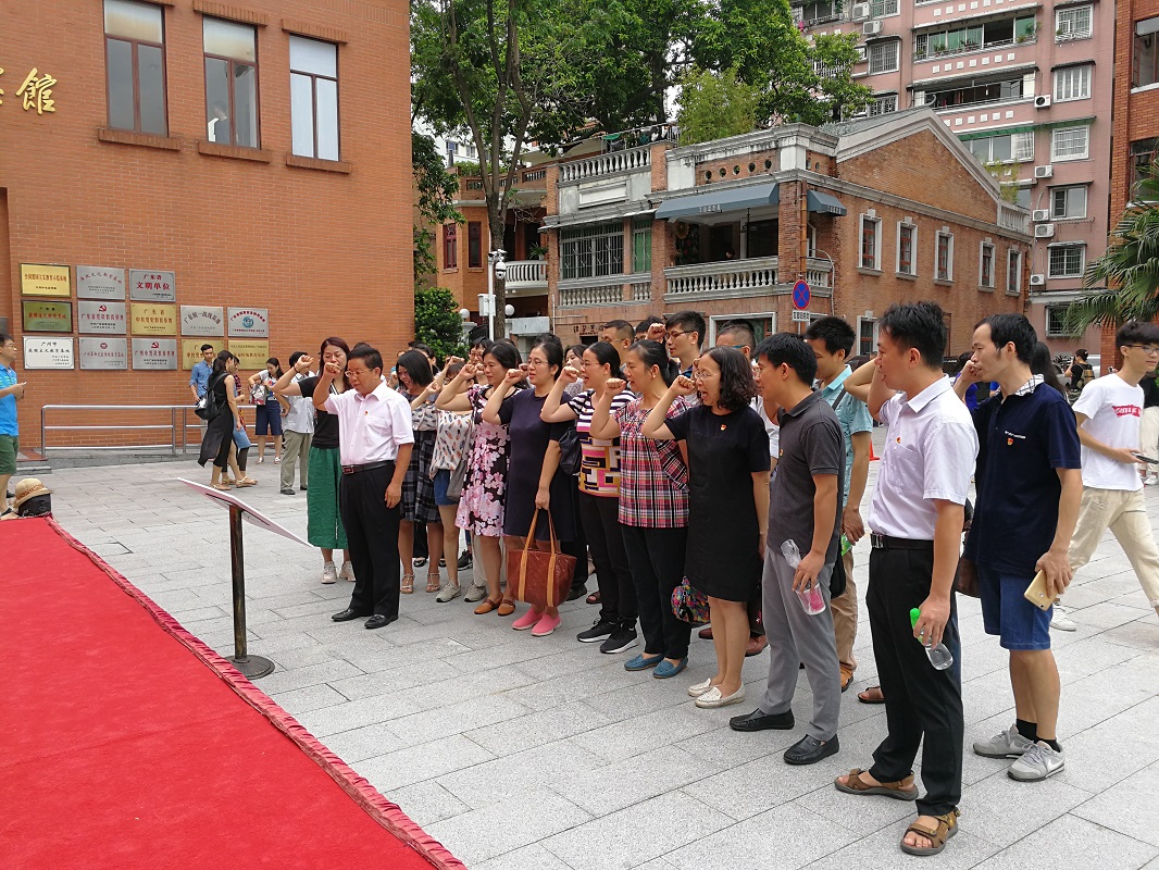 为全面深入学习贯彻习近平新时代中国特色社会主义思想和党的十九大精神,贯彻落实习近平总书记对广东提出的“四个走在前列”精神。2018年7月7日上午,教工第一党支部组织全体党员到中共三大旧址开展“传承红色基因,强化党员责任”党课及参观教育活动。