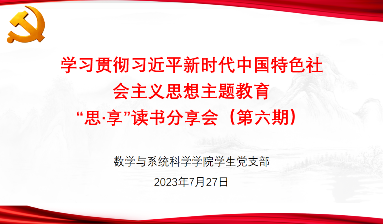 为推进学习型党组织建设,形成“爱读书、读好书、善读书”的浓厚氛围,促进学生党员自觉用习近平新时代中国特色社会主义思想武装头脑、指导实践、推动工作,把思想伟力转化为实践动力,把学习成效转化为工作成效,7月27日晚上,太阳成集团tyc122cc入口学生党支部通过腾讯会议开展学习贯彻习近平新时代中国特色社会主义思想主题教育“思?享”读书分享会(第六期)。学生党支部书记王婷婷及全体党员参加了本次读书分享会。