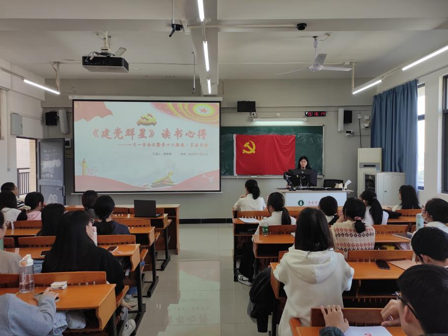 会上,全体学生党员集中阅读学习书籍《建党群星》,学生党员詹婕妤、劳绮婷、赵丹娜领学,带领全体党员更深入地学习了毛泽东、李大钊等同志对中国共产党所作出的重大贡献。