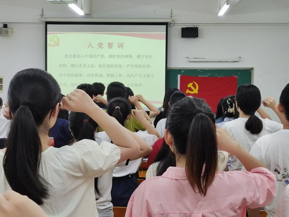 最后,支部书记王婷婷领誓入党誓词,重温入党的初心信念。党员同志面向党旗庄严宣誓,在铮铮誓言中重温入党初心,坚定理想信念,牢记职责使命。