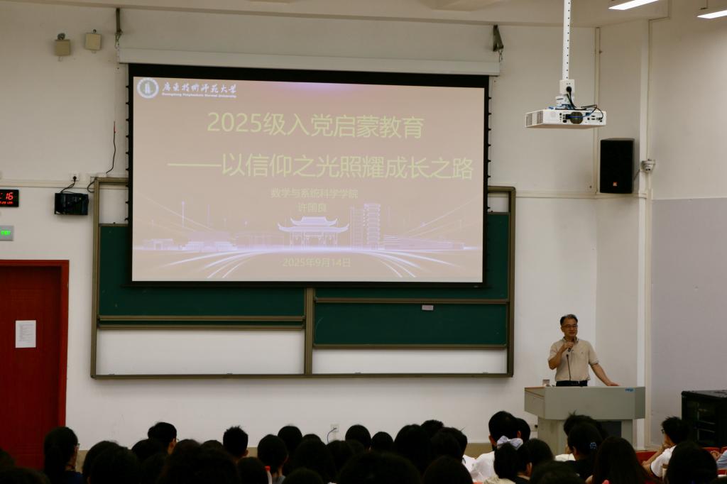 2025年9月14日,我院在河源校区博学大讲堂102室开展2025级新生入党启蒙教育活动。本次教育活动由学院党委副书记许国良主讲,主题为”以信仰之光照耀成长之路”,旨在引导新生端正入党动机、了解入党流程,坚定理想信念。