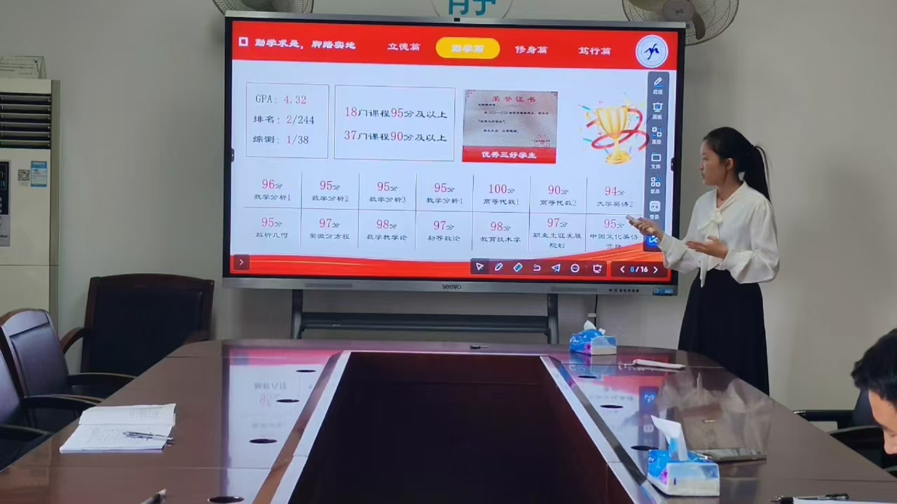 此次答辩会由辅导员陈薇羽主持,评委由学院党委副书记许国良、辅导员、班主任代表和2个学生代表组成。全院共有4名国奖候选人参加答辩会,答辩会包含个人展示、评委提问和评分三方面。答辩中,学生利用PPT汇报自己的学习成果、科研进展和社会实践,随后接受评委的提问和评估。